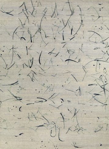 The design is interpreted in a blend of hand processed, high-altitude wool and cultivated silk, using time treasured hand-knotting techniques. Meticulous dyeing of the yarns produce complexity and depth of color which enrich the overall aspect of the carpet. The tweeding of wool and silk, and cultivated silk accents, creates a shimmery mix that is a delightful expansion of Fort Street Studio’s repertoire of beautifully hand-crafted carpets.