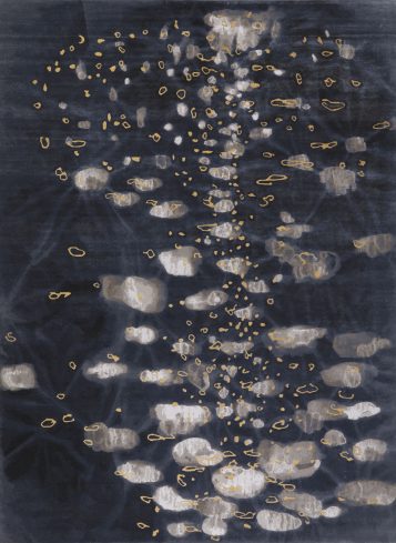 The design is interpreted in hand processed, high altitude wool and cultivated silk, according to time-treasured flatweaving and Persian hand-knotting techniques. Meticulous hand-dyeing of the yarns produces complexity and depth of color which enrich the overall aspect of the carpet.